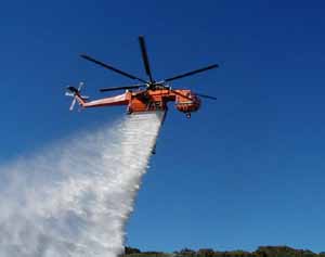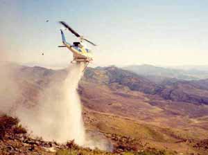 Helicopters are used for several purposes including water drops using a fixed tank or a suspended bucket, personnel movement, search and rescue, medical evacuation and observation. When used to drop water these aircraft carry 50 to 2000 gallons of water, some may also use foam or fire retardant. An advantage to most helicopters is that they may refill from a water source (pond, river, swimming pool etc) by hovering over it and dipping their bucket or draft hose into it. They also are more precise than fixed wing aircraft allowing them to work in close proximity to ground crews. Like the air tankers many helicopters are military surplus. Some areas call helicopters with tanks holding 1000 gallons or more Heli-tankers. Some of the more common helicopters used are: