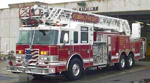 The most basic type of Truck is often called a Community Services Truck, City Services Truck or just a Service Truck, it is really nothing more than a vehicle mounting a complement of ground ladders and useful fire ground support equipment such as power saws, cutting torches, salvage covers, and portable lighting. These vehicles are often built on a commercial chassis or are a conversion of an older vehicle.