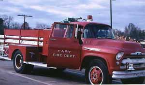 Fire apparatus designed to carry ladders are known as Trucks. Early Trucks were simply carts with ladders, they also typically carried some buckets to form bucket brigades. In Colonial America it was a common practice for these vehicles to carry large hooks which were used to help pull down burning buildings to prevent the spread of the fire to the rest of the village. This is where the traditional name of hook and ladder began. Modern ladder apparatus often includes an elevated nozzle but until the 1930's aerial ladders and water towers were separate pieces of apparatus.