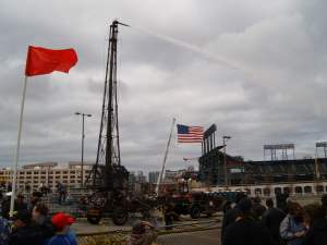 Because of their specialized nature most Trucks are built on a custom chassis but they can be built using a commercial chassis. The earliest aerial device was a large wooden ladder mounted on the vehicle, these first became available shortly after the American Civil War. Also used at the time were water towers, an elevated nozzle on a long pipe that could be raised to provide water to upper floors of tall buildings. Both of these devices were manually operated. By the turn of the Century these ladders were available in lengths up to 100 feet and various means of power assist were added including compressed air, spring power and eventually hydraulics. Metal ladders made from steel or aluminum became available in the 1930's, these ladders were strong enough to combine an elevated nozzle and water way into the ladder making the single purpose water towers obsolete. Water-towers began to fall into decline as metal ladders were adopted but the water-tower continued in use through the 1960's, and a handful were still in service into the 1970's. Aerial ladders were simply large powered ladders until the 1950's, since then several variations of the aerial ladder have been developed.