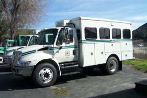 Crew transports or Crew Buggies are commonly used by wildland firefighting hand crews, these may be crew cab pick up trucks, passenger vans, a bus or custom built vehicles hauling 10 to 20 firefighters and their equipment. Some have 4 wheel drive but that is not required.