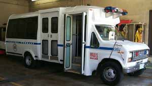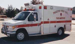 Ambulances are specialized vehicles designed for transporting ill and injured people. Some ambulances also carry firefighting or rescue equipment. There are three common types of ambulance, a type 1 ambulance has a modular box mounted on a truck chassis, type 2 ambulances are built on a van chassis and type 3 ambulances have a modular box mounted on a van chassis. In the past large sedans or station wagons were used to build ambulances, these were replaced by the van and modular box style ambulances during the 1970's. In recent years modular box ambulances built on a medium duty truck chassis have started appearing and a few departments have ordered combination pumper / ambulances; fire engines with space for a gurney and attendant in the cab.