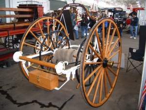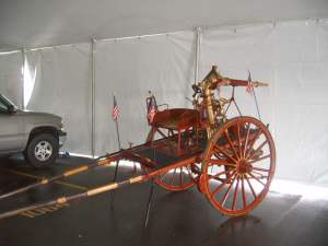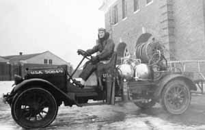 Chemical Units are another type of pumper introduced in the 1800's that survived well into the 20th century, they are also called chemical wagons, or chemical cars. Instead of using a mechanical pump to provide pressure they use chemistry. These were basically giant fire extinguishers mounted on a horse drawn cart and later a car or truck chassis. They carried one or more tanks of water and mixed sulfuric acid with sodium bicarbonate to create the needed pressure (much like the child's science experiment combining baking soda and vinegar). When the chemicals were mixed together it created the required force to push the water through a hose. While these vehicles did not carry a large amount of water they were fast often reaching a fire while it was still small. These vehicles began to fade away during the 1930's when the speed and agility of larger trucks improved, but they were still fairly common into the mid 1940's. Similar vehicles using carbon dioxide instead of a chemical mixture to create pressure were also used, these began appearing in the 1920's. In recent years small vehicles using compressed air and foam instead of a pump have started to show up, in many ways these could be considered the decendants of the chemical unit.