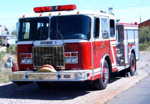 Mini and Midi Pumpers are compact versions of the standard pumper. There is some debate about the usefulness of the Mini-Pumper but so far it has managed to survive. It has 2 major advantages over full size apparatus. The first is cost, typically a Mini-Pumper is only about 1/3 the price of a full size Engine, this allows a department to get several small pumpers for the price of one large pumper, or for some small communities this may mean the difference between having a small but modern pumper instead of a larger antique. The second is access, full size pumpers are heavy (15-20 tons), long, (typically 30 feet or more), and tall (often 10-13 feet high). In comparison the typical Mini-Pumper weighs only 5 to 8 tons and is not much larger than a full size pick up truck, many also have 4 wheel drive. For rural areas with narrow unpaved roads, low overhangs and bridges with weight restrictions the Mini-Pumper can easily get to places a larger pumper might not be able to get to at all. On the down side most Mini-Pumpers are limited to carrying 300 gallons of water or less and only pump about 500 gallons per minute (or about 1/2 the capacity of a typical full size pumper). Also most mini-Pumpers only carry a small extension ladder and they have much less space for carrying equipment. Mini-Pumpers are not limited to rural areas, some departments use them as special purpose or fast attack vehicles complementing rather than replacing larger pumpers.