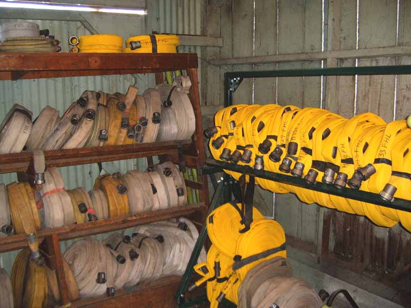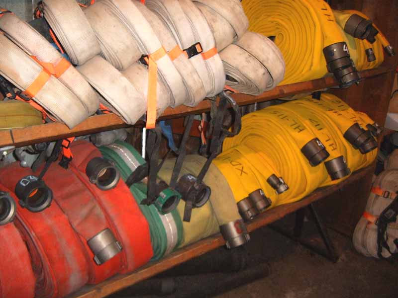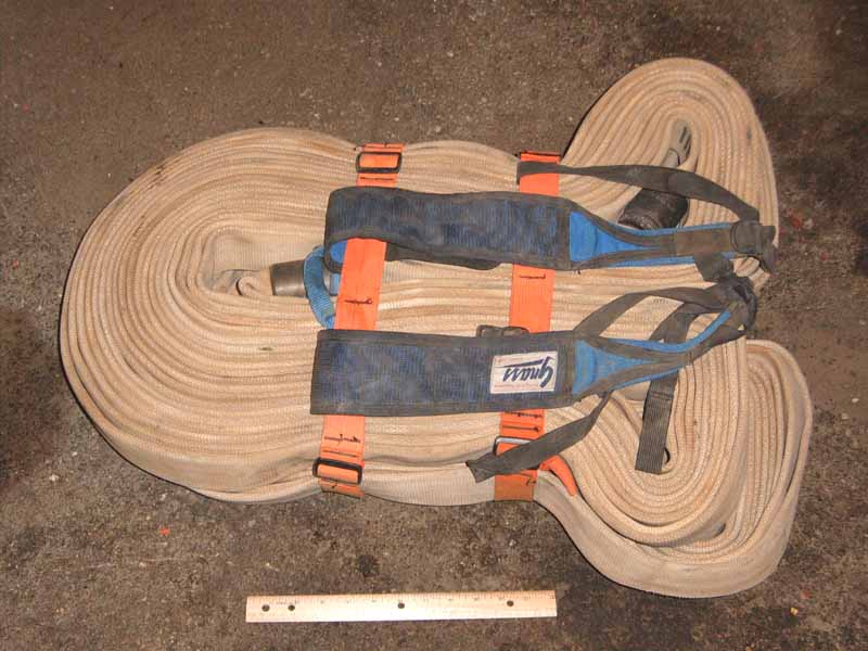 The one on the left carries 50 feet of 2.5" hose and 75 feet of